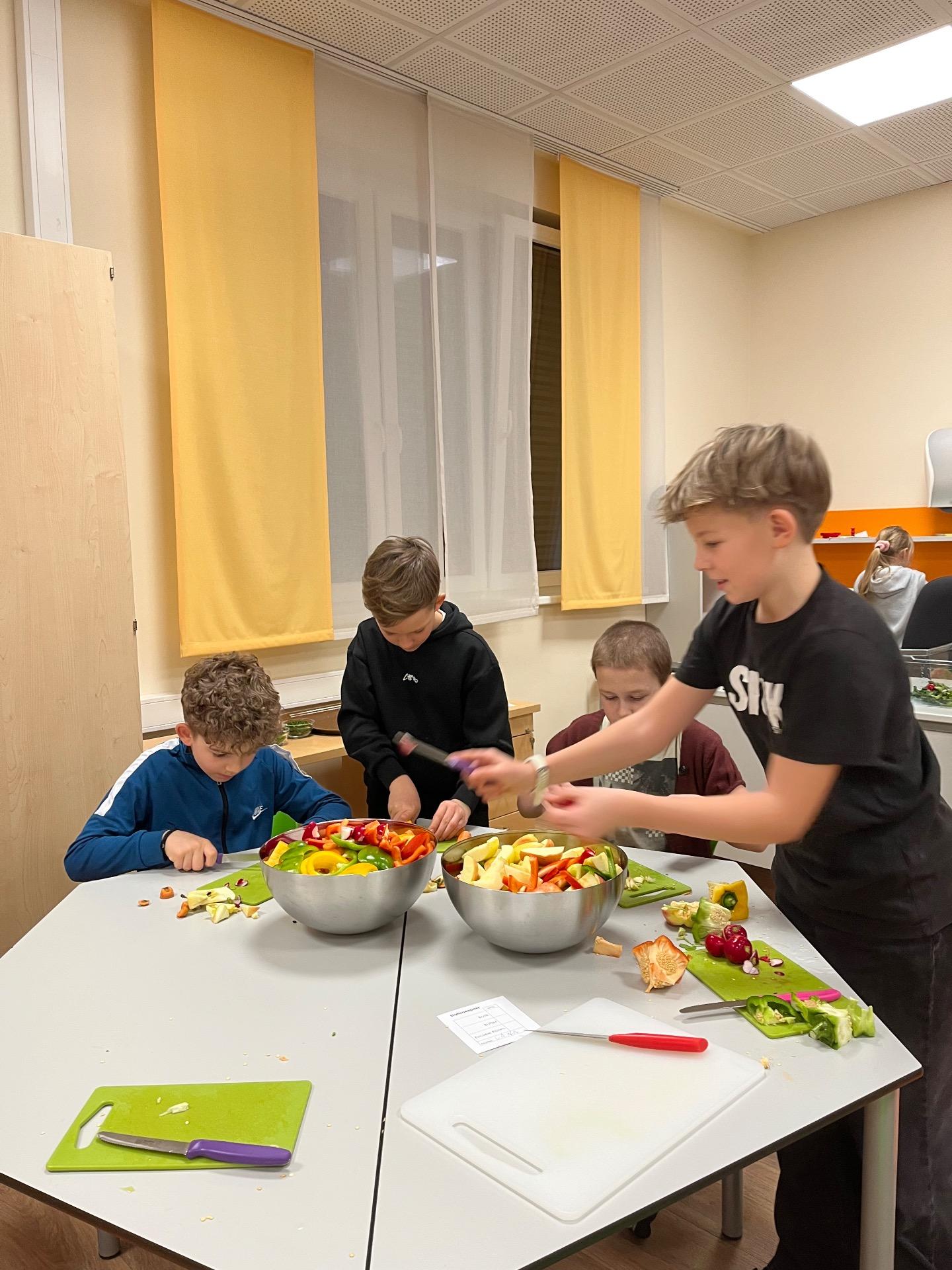Am 20. Jänner fand von 17 bis 22 Uhr der Klassenabend der 4. Klasse statt. Schon zu Beginn waren alle Kinder mit großem Eifer dabei: Gemeinsam wurde das Abendessen vorbereitet. Es wurden zahlreiche Aufstriche zubereitet, außerdem Gemüse und Obst geschnitten und das Buffet liebevoll hergerichtet. Alle halfen fleißig mit und freuten sich darauf, anschließend gemeinsam zu essen.
