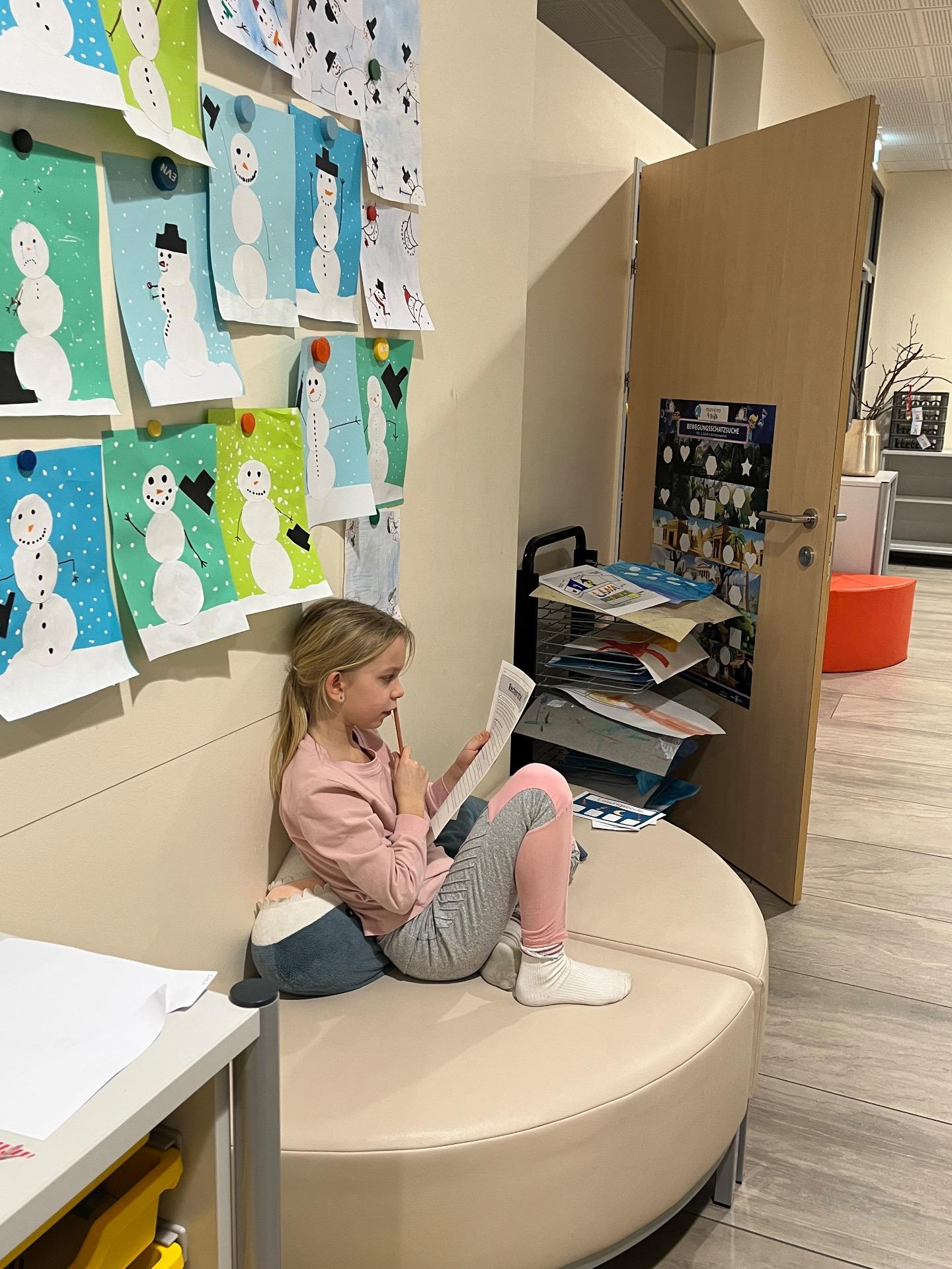 Wer zwischendurch eine ruhigere Beschäftigung suchte, konnte auch sein von zu Hause mitgebrachtes Buch in der Klasse lesen, die zu diesem Zeitpunkt als Ruheoase diente.