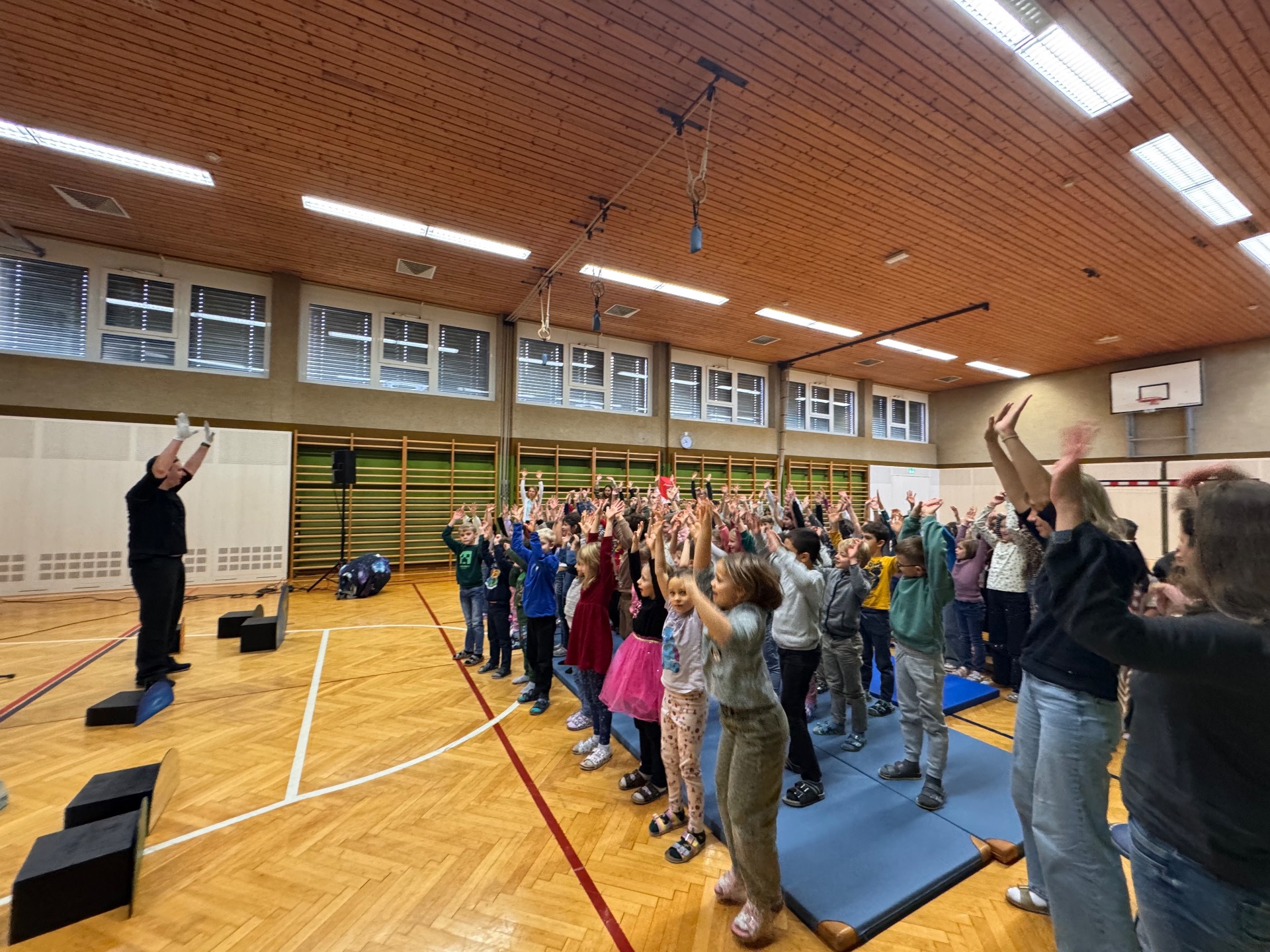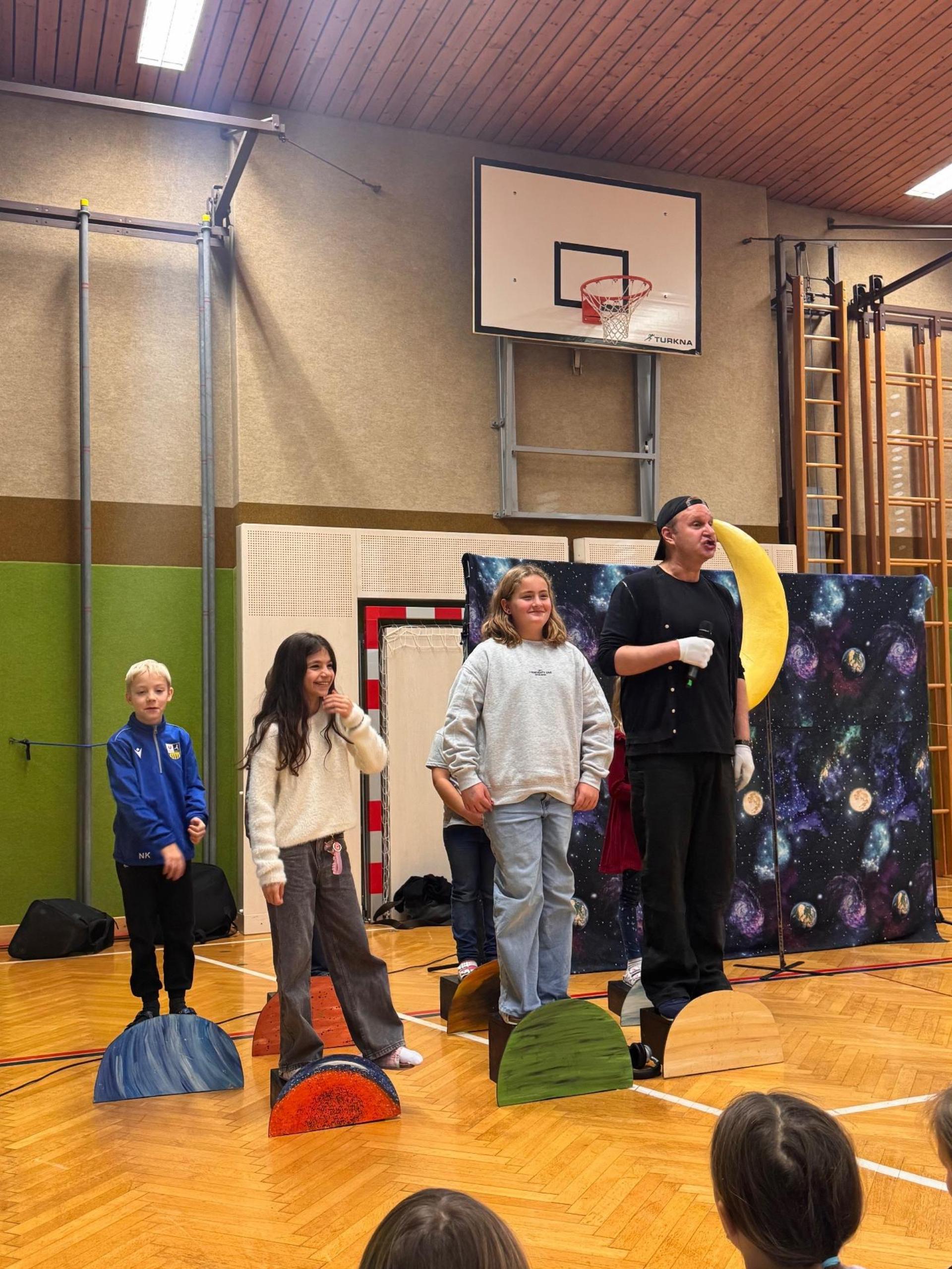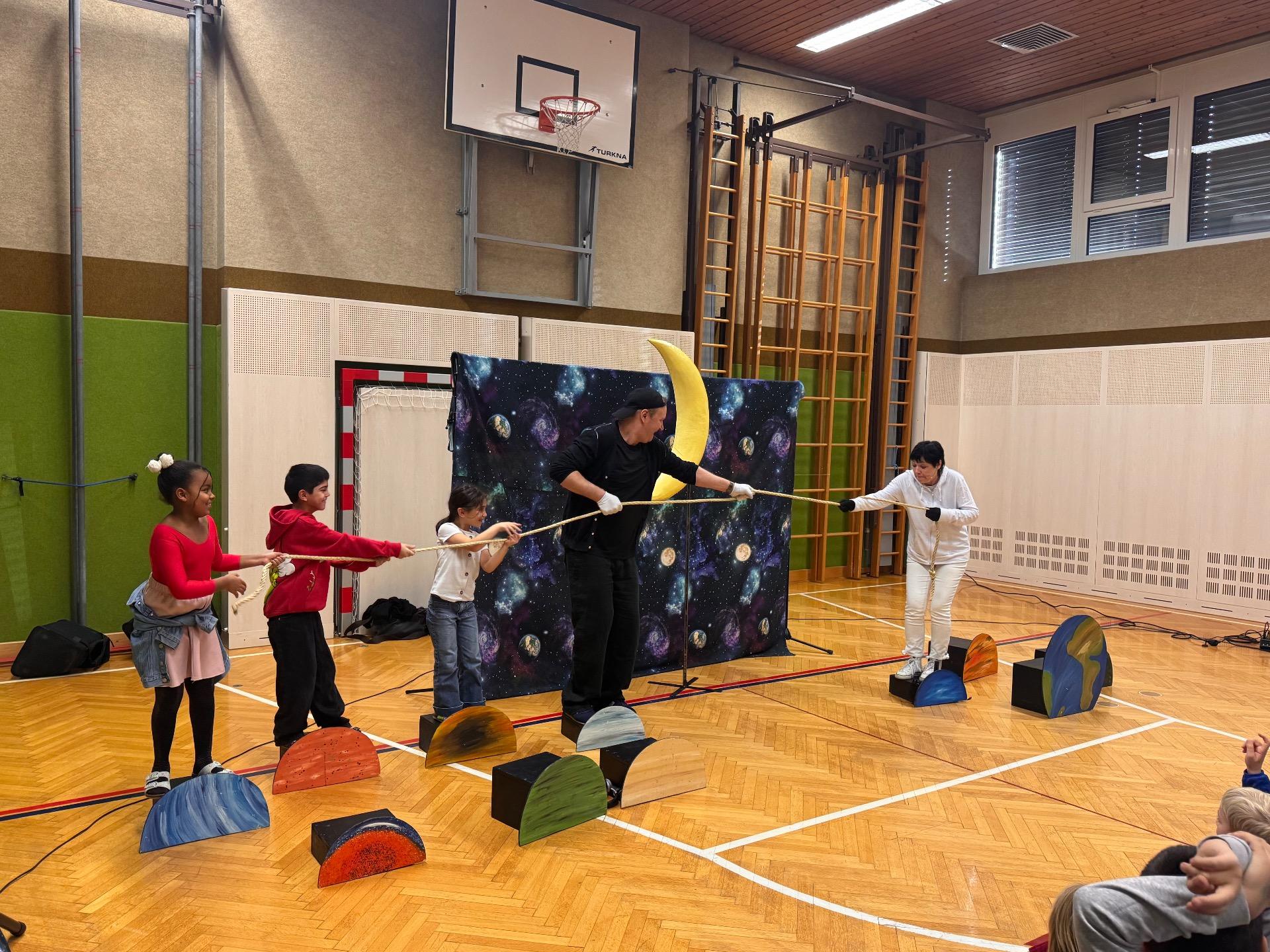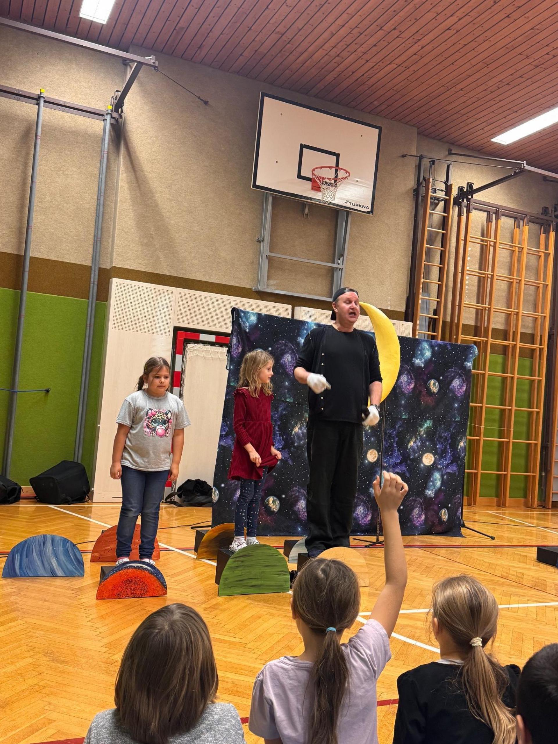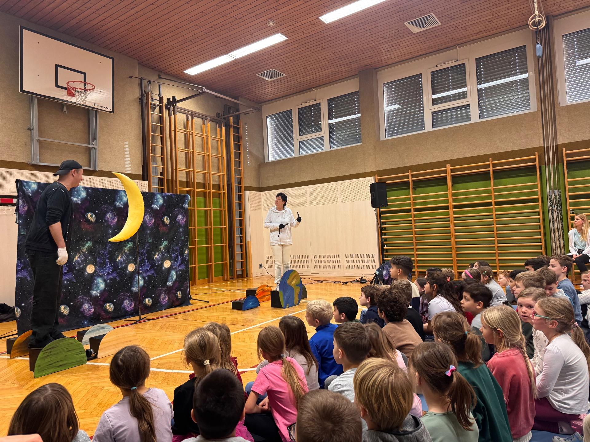 Am Dienstag, den 9. Dezember 2025, besuchte uns das Team Sieberer und begeisterte uns mit dem Theaterstück „Mann im Mond“. Das Stück handelte von der Wichtigkeit der Freundschaft und machte Wertschätzung, Solidarität und Verlässlichkeit als wichtige Werte erkennbar. Die Kinder fieberten mit und waren beim Mitsingen und Tanzen begeistert dabei. Was für ein tolles Erlebnis für die ganze Schule!