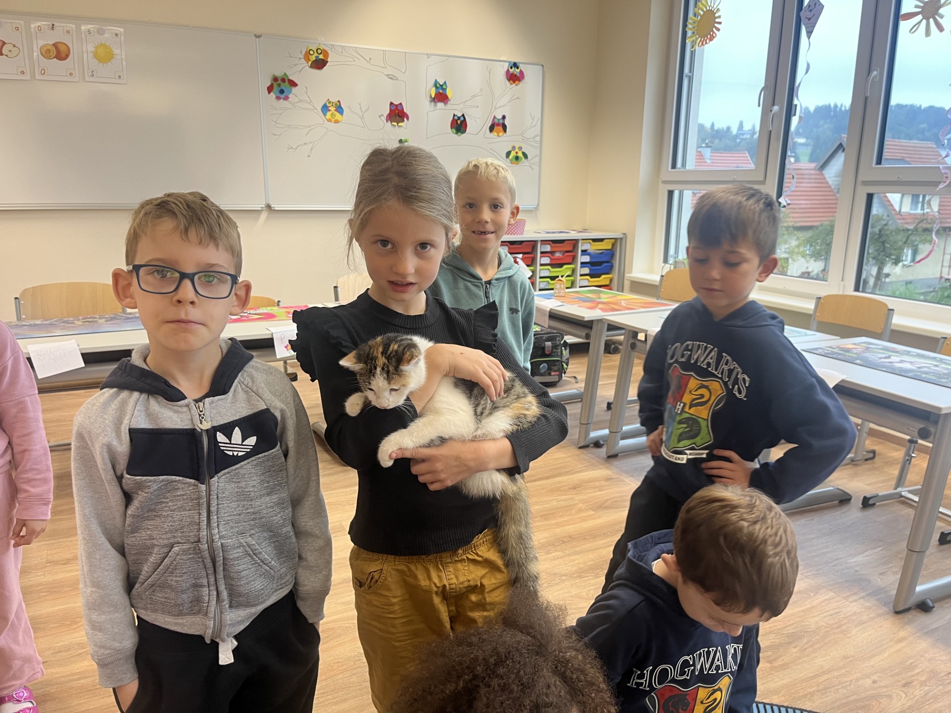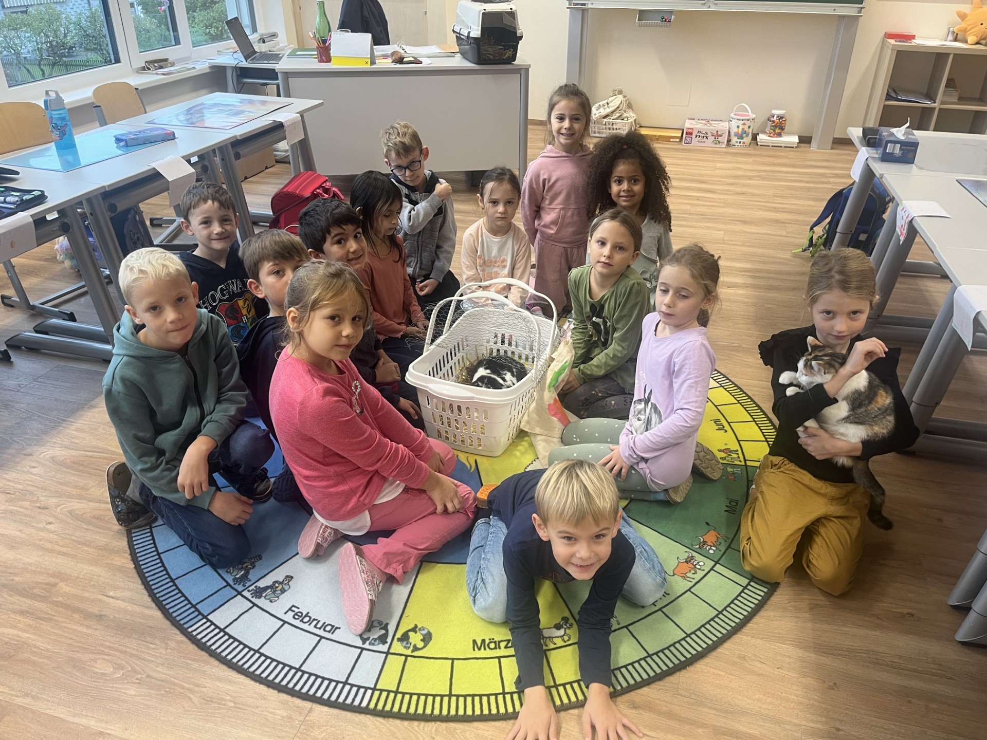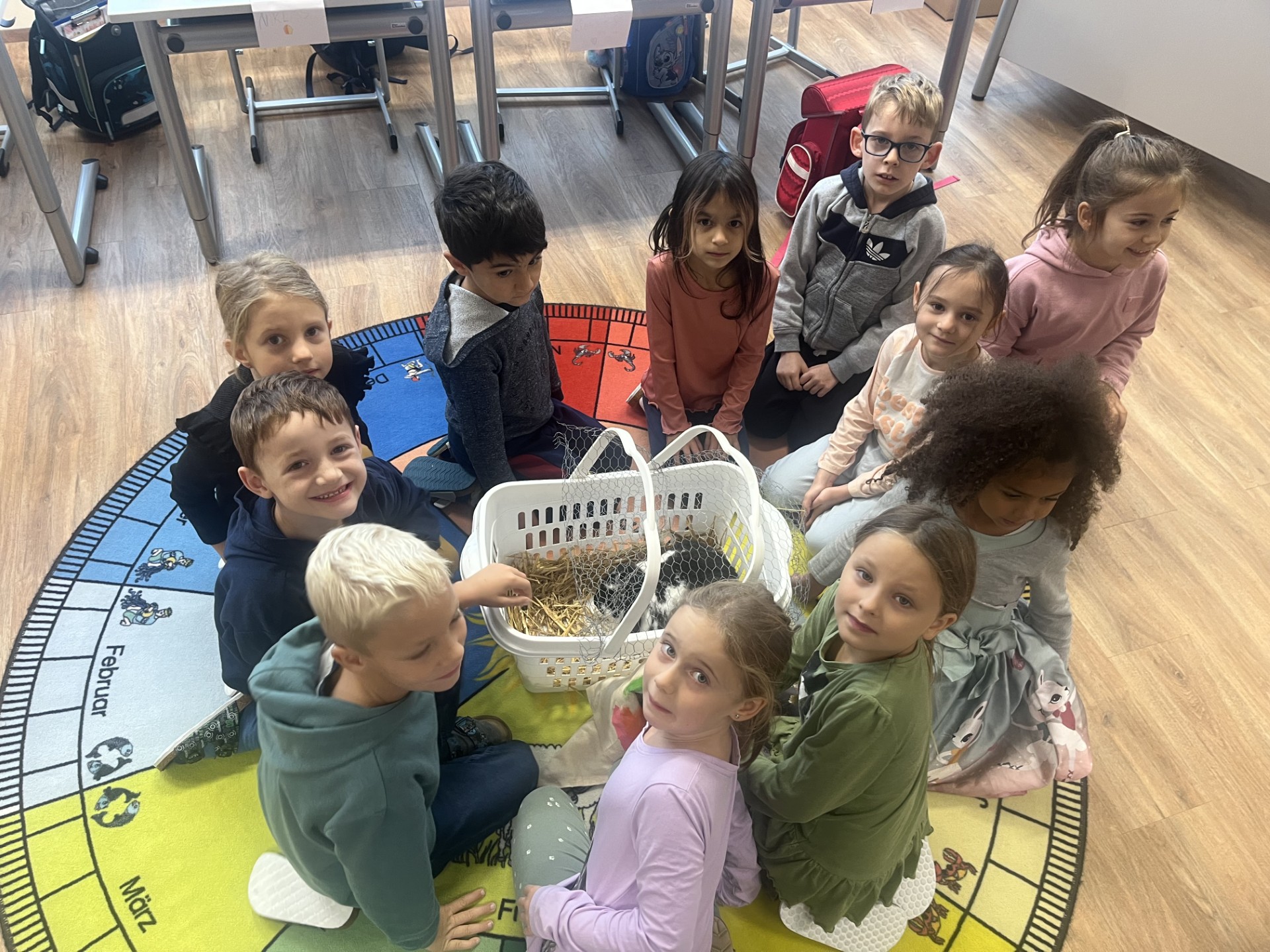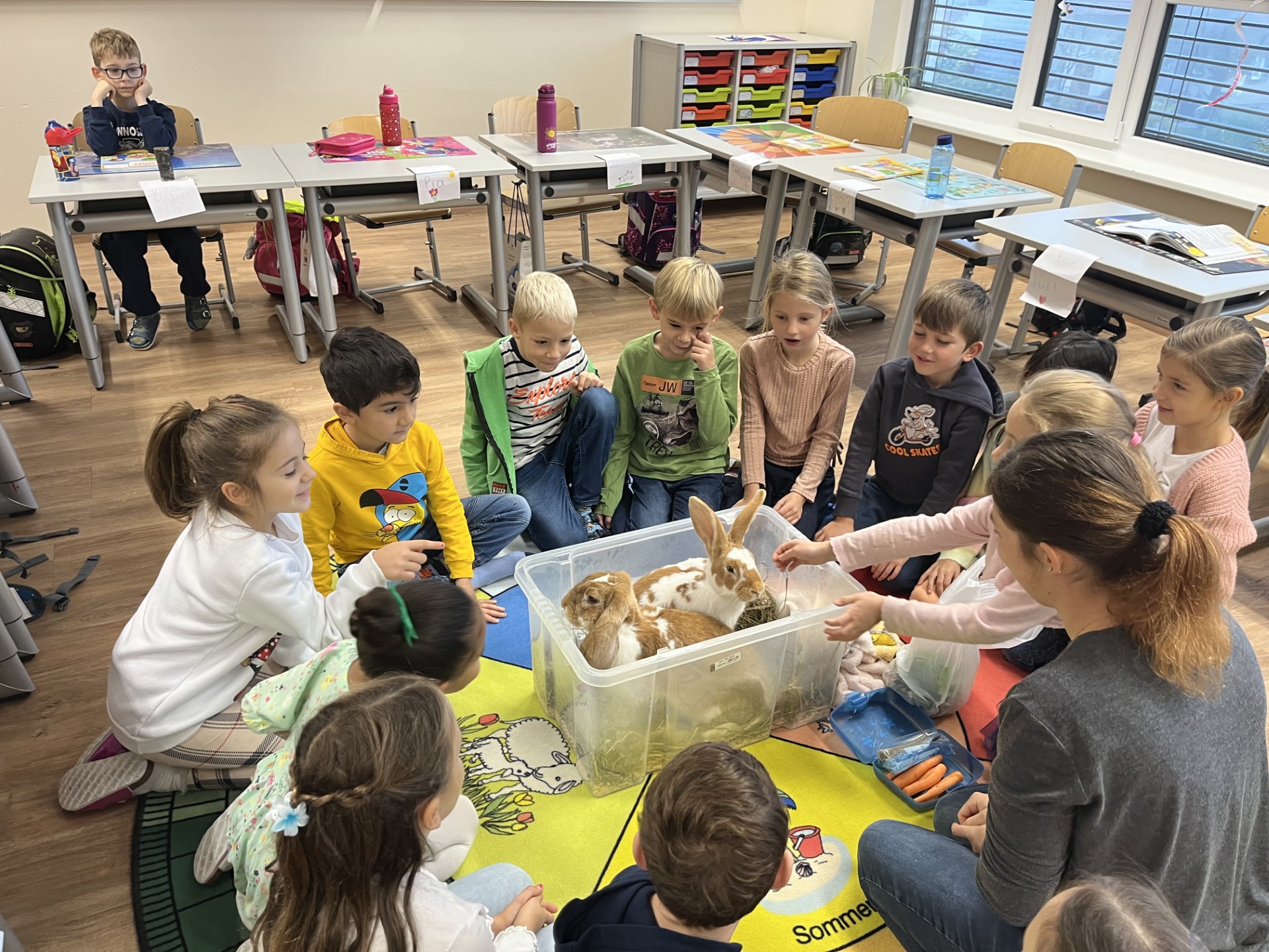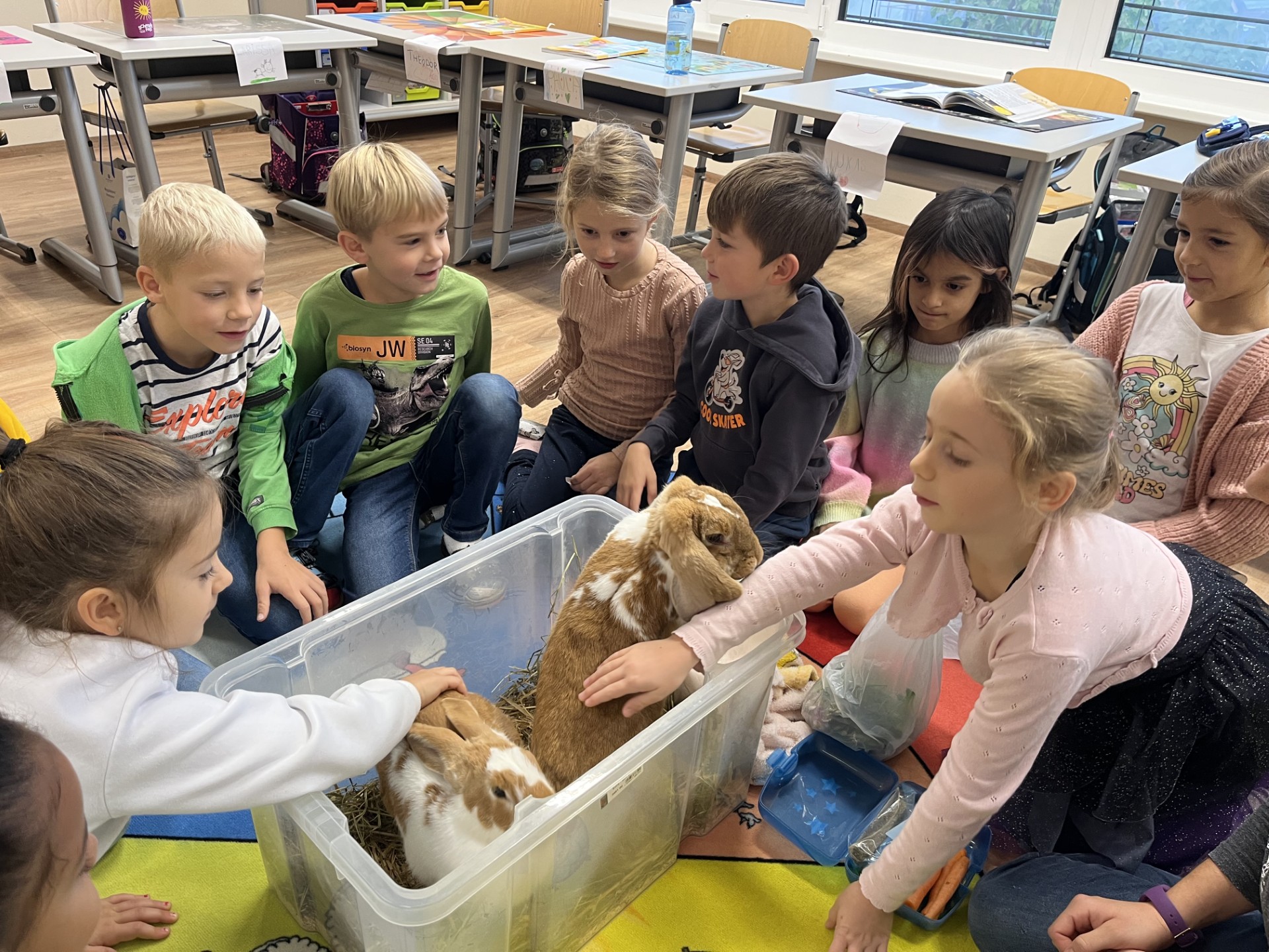 Die Kinder der 1b haben sich sehr über unsere tierischen Besucher gefreut.