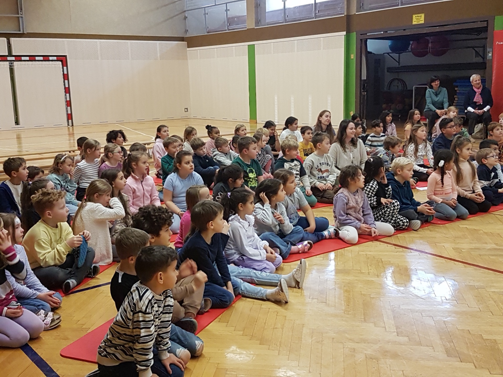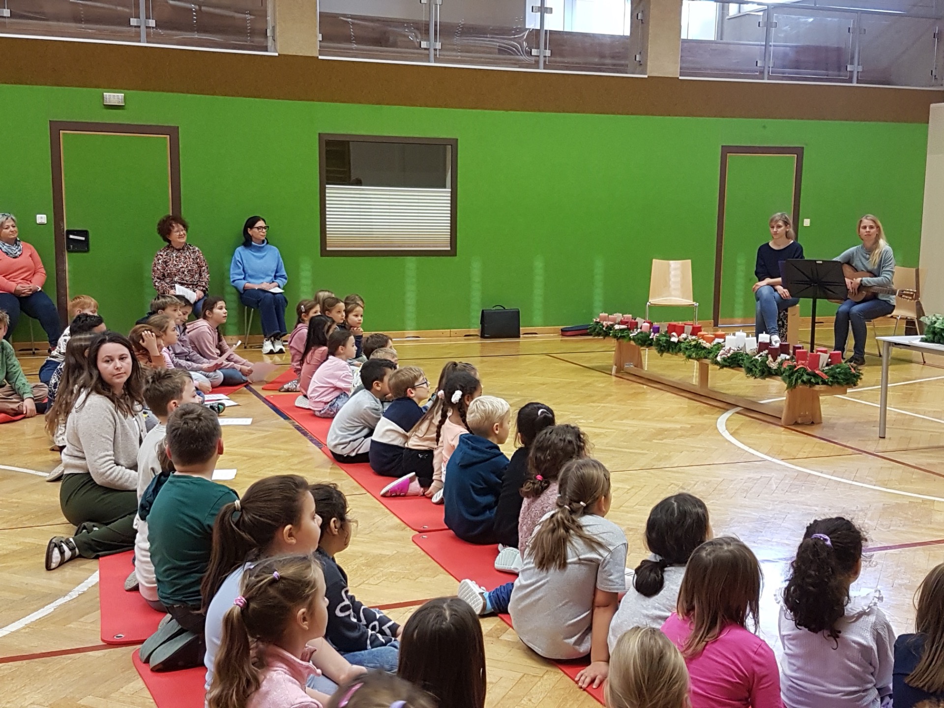 Gemeinsam sangen die Schülerinnen und Schüler Adventlieder und stimmten sich so auf die kommende vorweihnachtliche Zeit ein. Die feierliche Atmosphäre und die schön geschmückten Adventkränze machten diesen Moment zu einem besonderen Beginn der Adventzeit für die ganze Schulgemeinschaft.