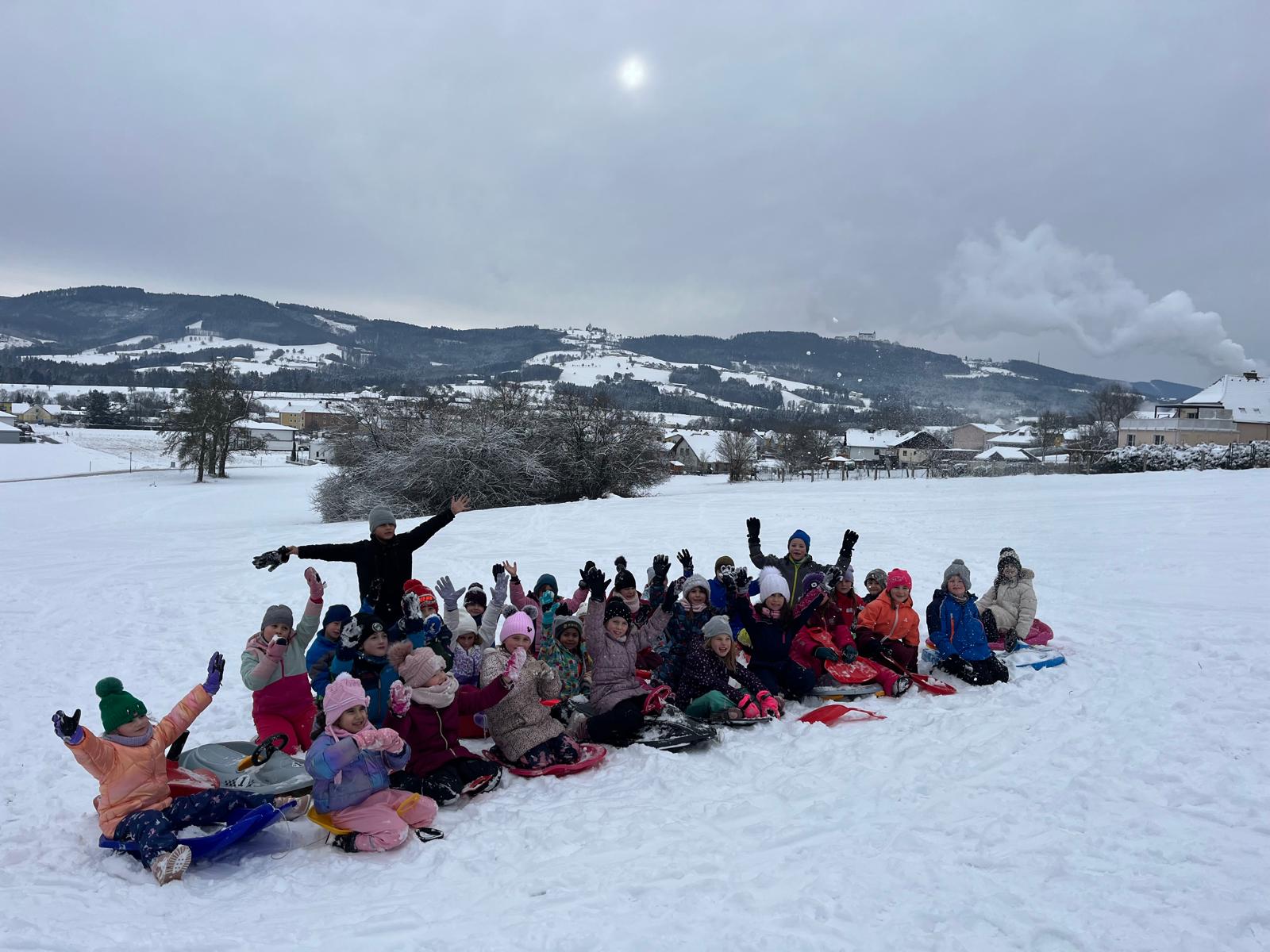 Am Montag, den 12. Jänner 2026, machten sich die Kinder der 1a und 1b auf den Weg zu einer Bobwiese. Bei perfektem Winterwetter hatten alle großen Spaß, unzählige Male den Hang hinunterzuflitzen und dabei immer mutiger zu werden. Es war ein lustiger Tag, der uns noch lange in Erinnerung bleiben wird.