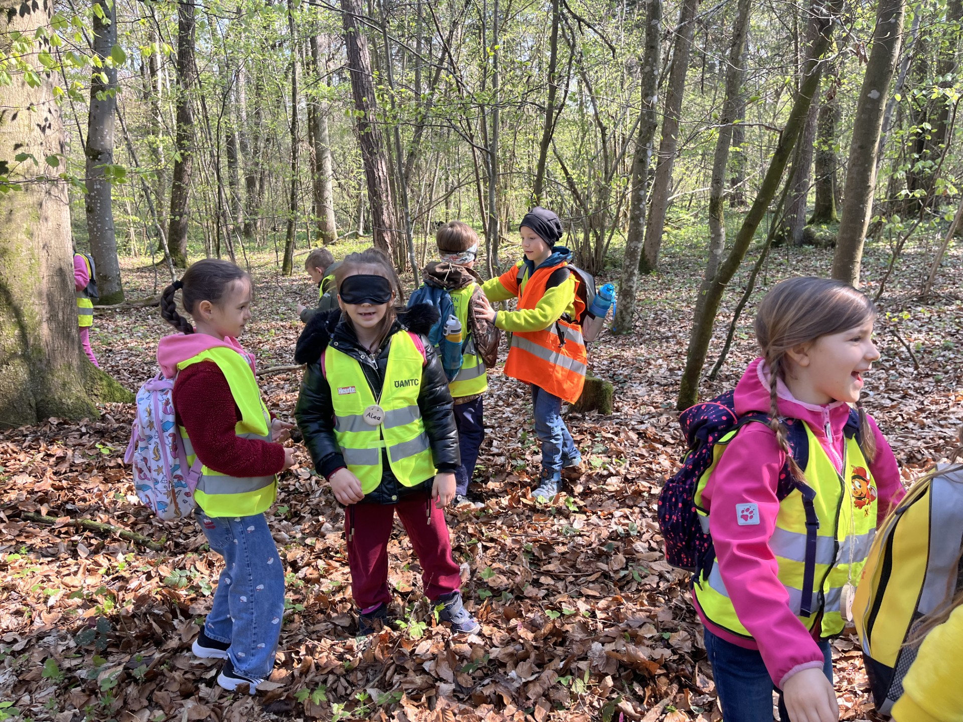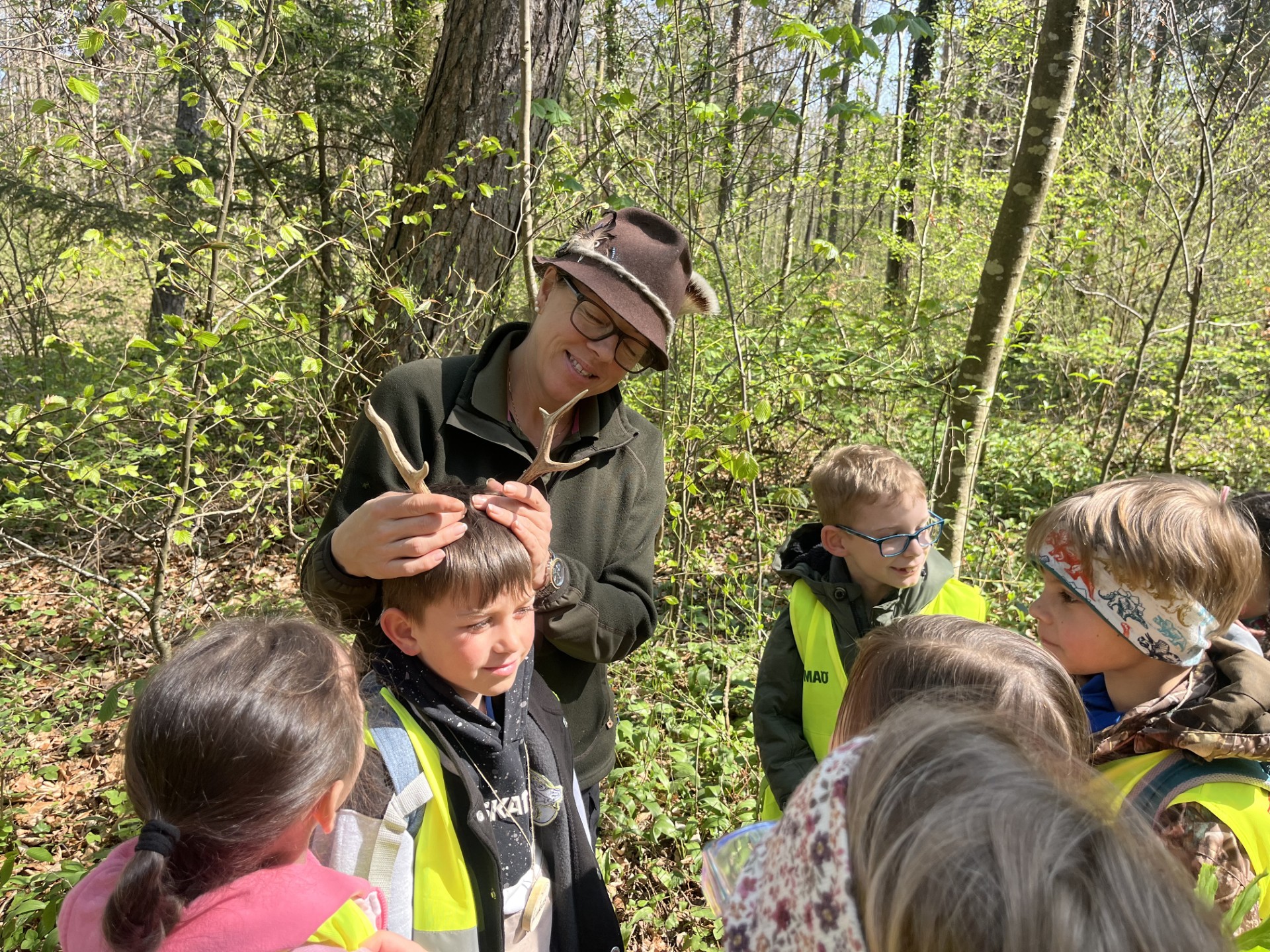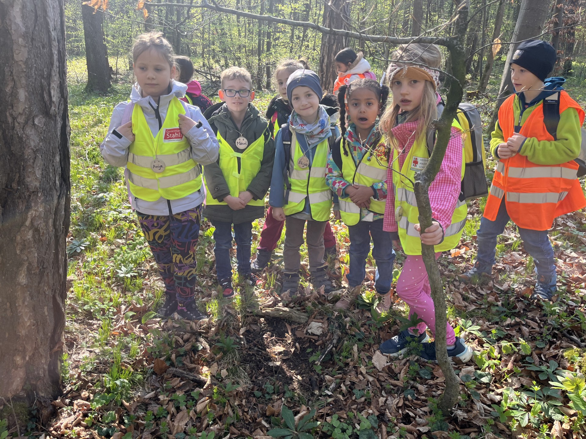 Am Freitag, 17.04.2026, verbrachten wir, die 1b, einen interessanten und lehrreichen Vormittag im Wald. Gemeinsam mit der Waldpädagogin Anja erkundeten wir die Pflanzenwelt und entdeckten Tierspuren.