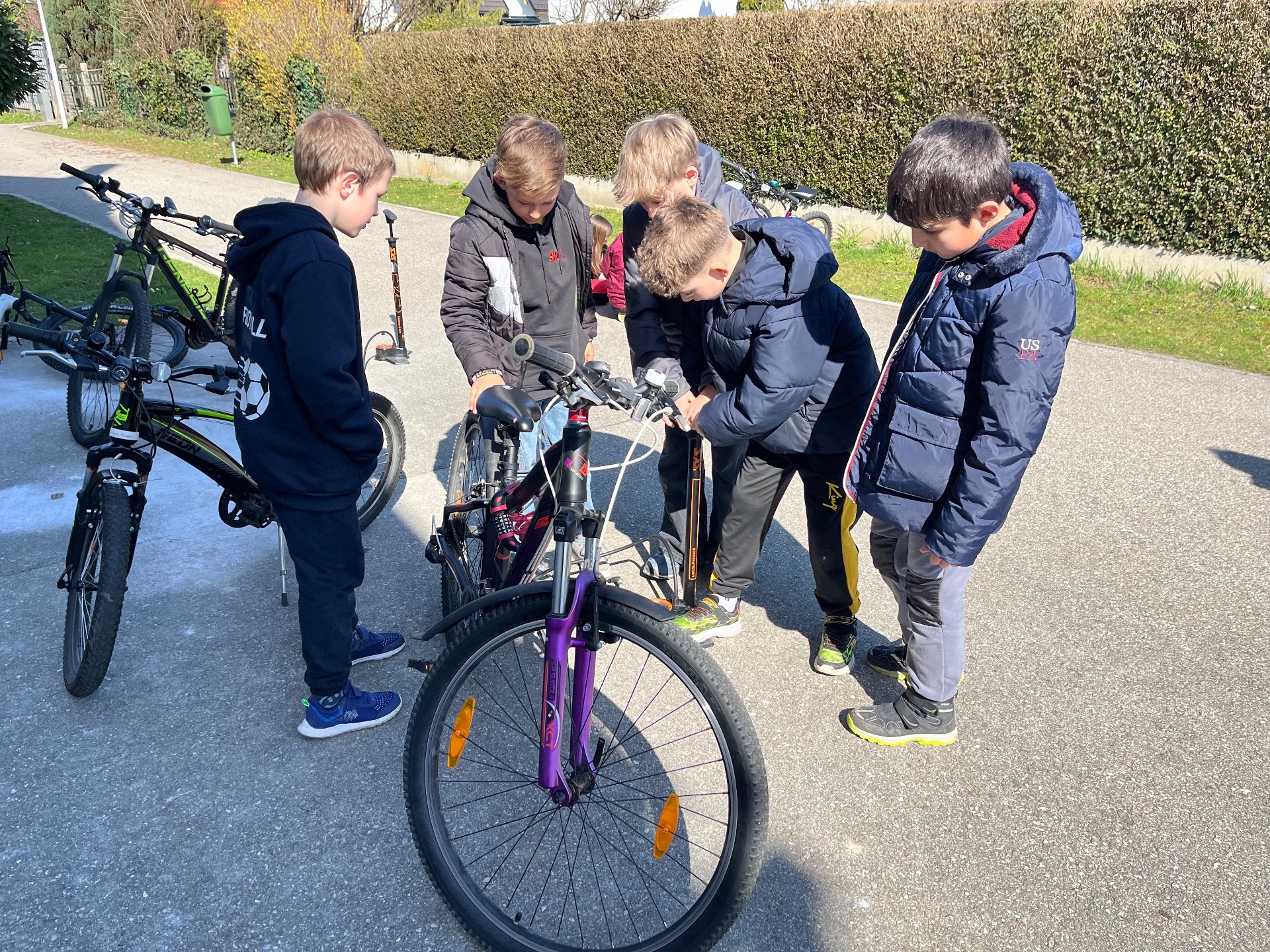 Wenn die Temperaturen steigen und die Sonne lockt, werden auch die Fahrräder wieder aus dem Keller geholt. Damit die ersten Radausflüge sicher gelingen und die Räder bestens für die bevorstehende Radfahrprüfung gerüstet sind, fand in der 4. Klasse ein Bike Checker Workshop statt.
