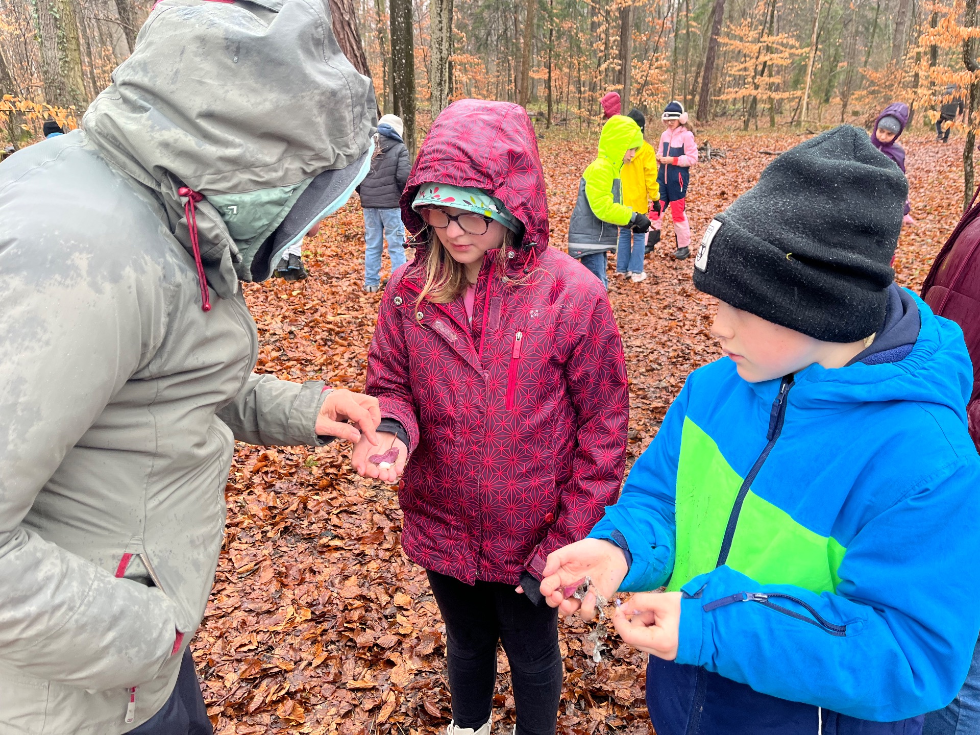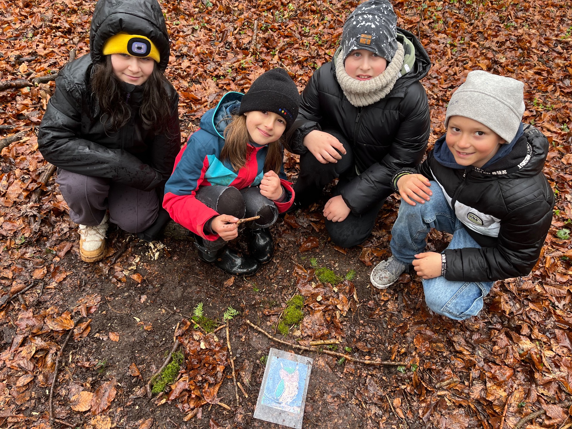 Heute fand das dritte Waldabenteuer der 4. Klasse statt. Trotz Kälte, Regen und sogar ein wenig Graupel zeigte sich: Auch bei nicht ganz so freundlichem Wetter kann man im Wald eine spannende und schöne Zeit verbringen.