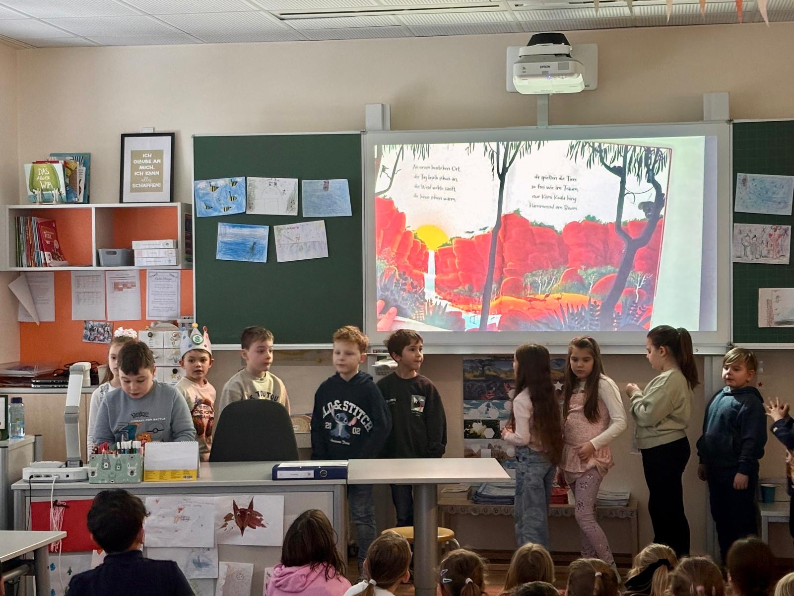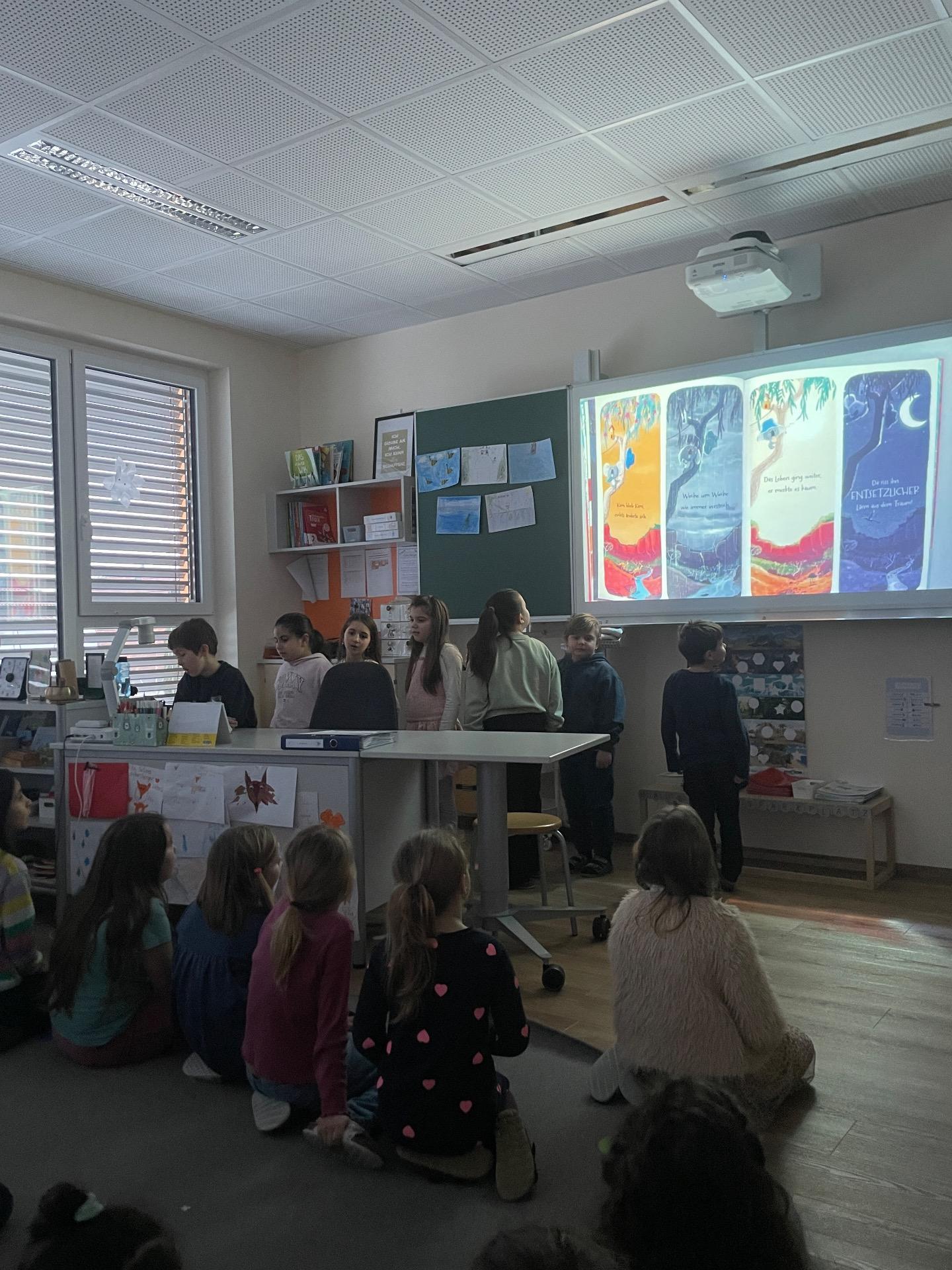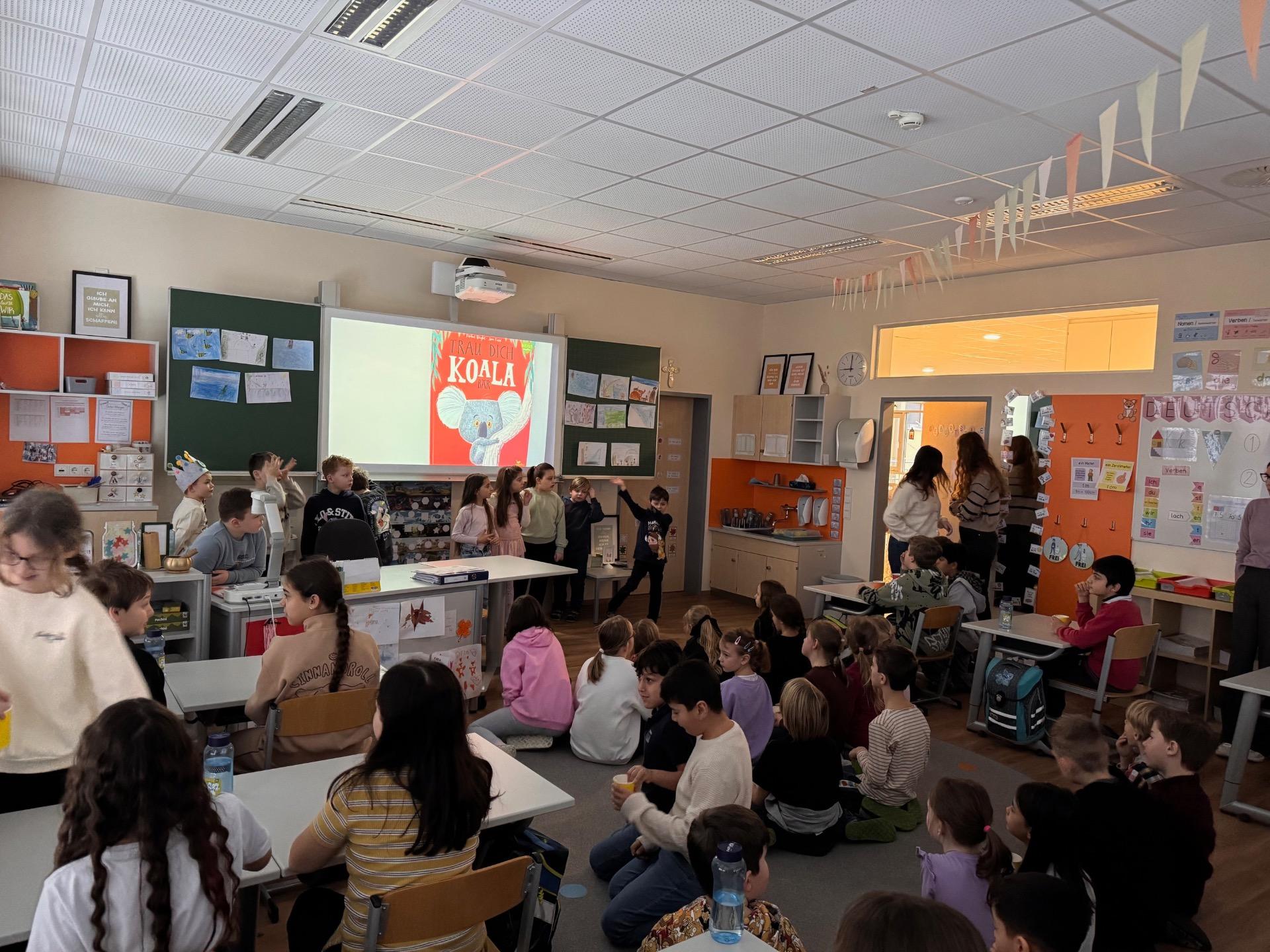 Die 2b las das Bilderbuch „Trau dich, Koala Bär“ vor und begeisterte das Publikum mit der mutmachenden Geschichte.