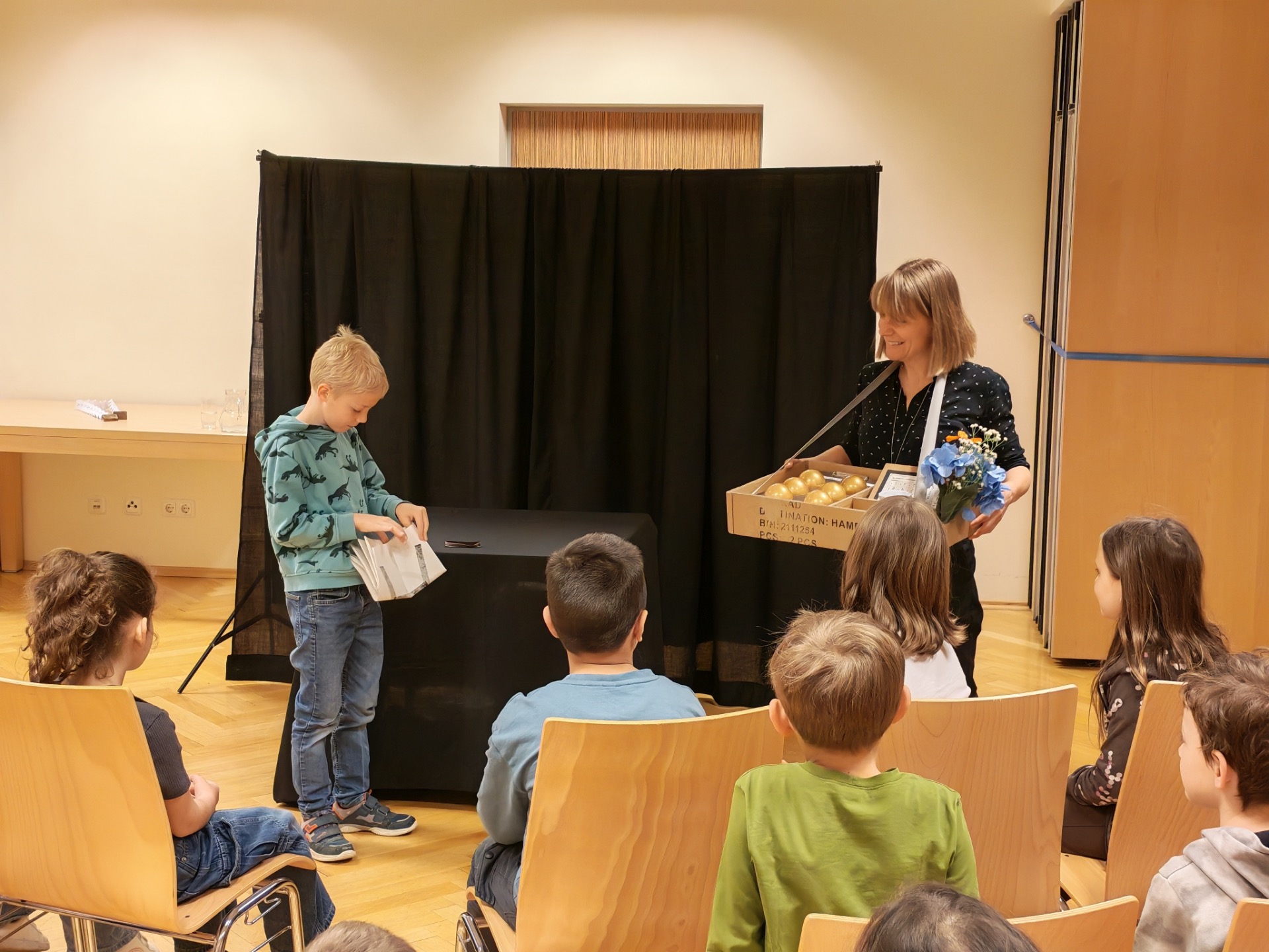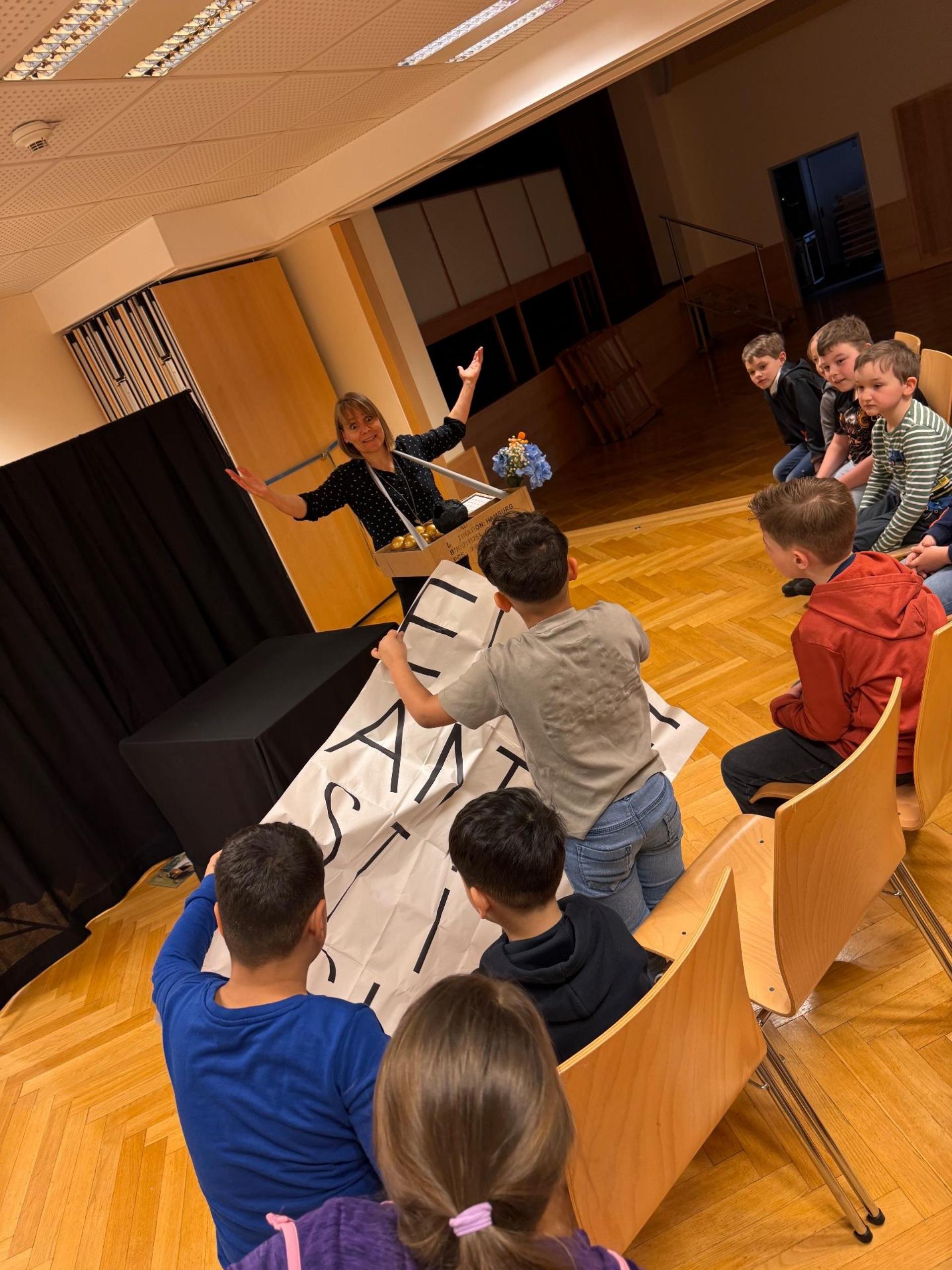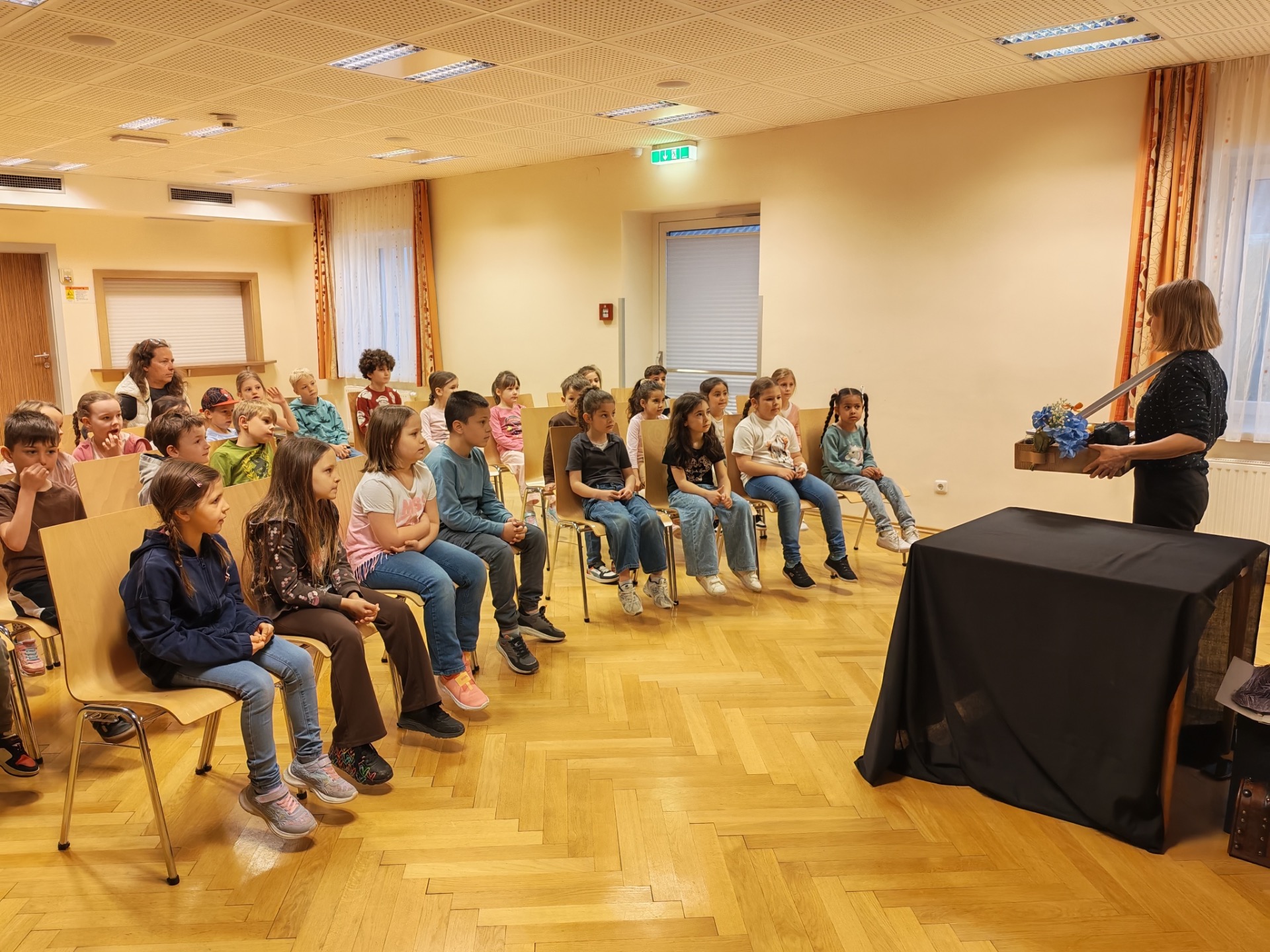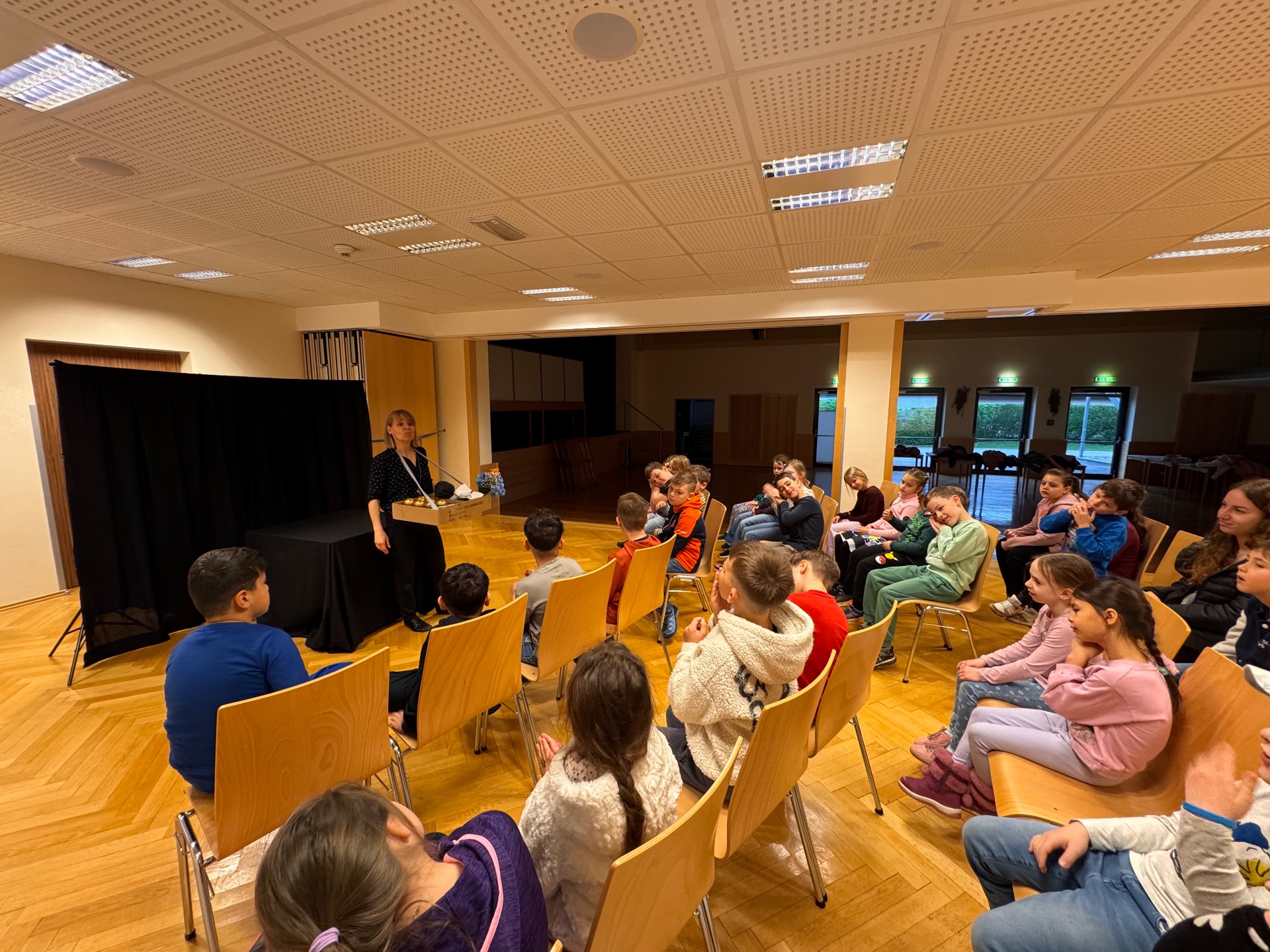 Ein besonderes Erlebnis erwartete heute die Schülerinnen und Schüler der Volksschule Kematen: Die Autorin und Sprachkünstlerin Petra Forster war zu Gast im Zentrum Kemart und gestaltete eine abwechslungsreiche Lesung für alle Kinder unserer Schule.