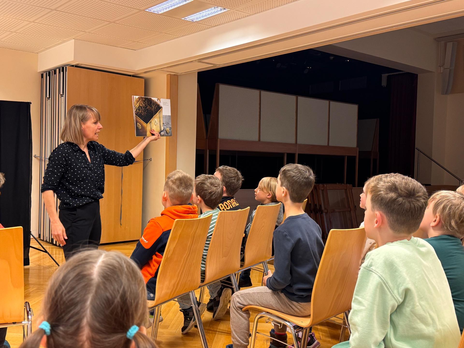 Für jede Schulstufe der VS Kematen gab es eine eigene Stunde, in der die Kinder in die Welt der Sprache eintauchen konnten. Vorgestellt wurde das Buch „Der Wortschatz“. Die Kinder waren nicht nur Zuhörerinnen und Zuhörer, sondern wurden aktiv in die Lesung eingebunden. Mit viel Humor, Kreativität und Mitmachmomenten gelang es Petra Forster, die Schülerinnen und Schüler für Sprache, Wörter und deren Bedeutung zu begeistern. Viele konnten dabei entdecken, wie lebendig und unterhaltsam Sprache sein kann. Ebenso wurde der Frage nachgegangen, wie unsere Welt aussehen würde, wenn es keine Sprachen gäbe. Die Lesung war eine gelungene Abwechslung zum Schulalltag und wird den Kindern der Volksschule Kematen sicher noch lange in Erinnerung bleiben.