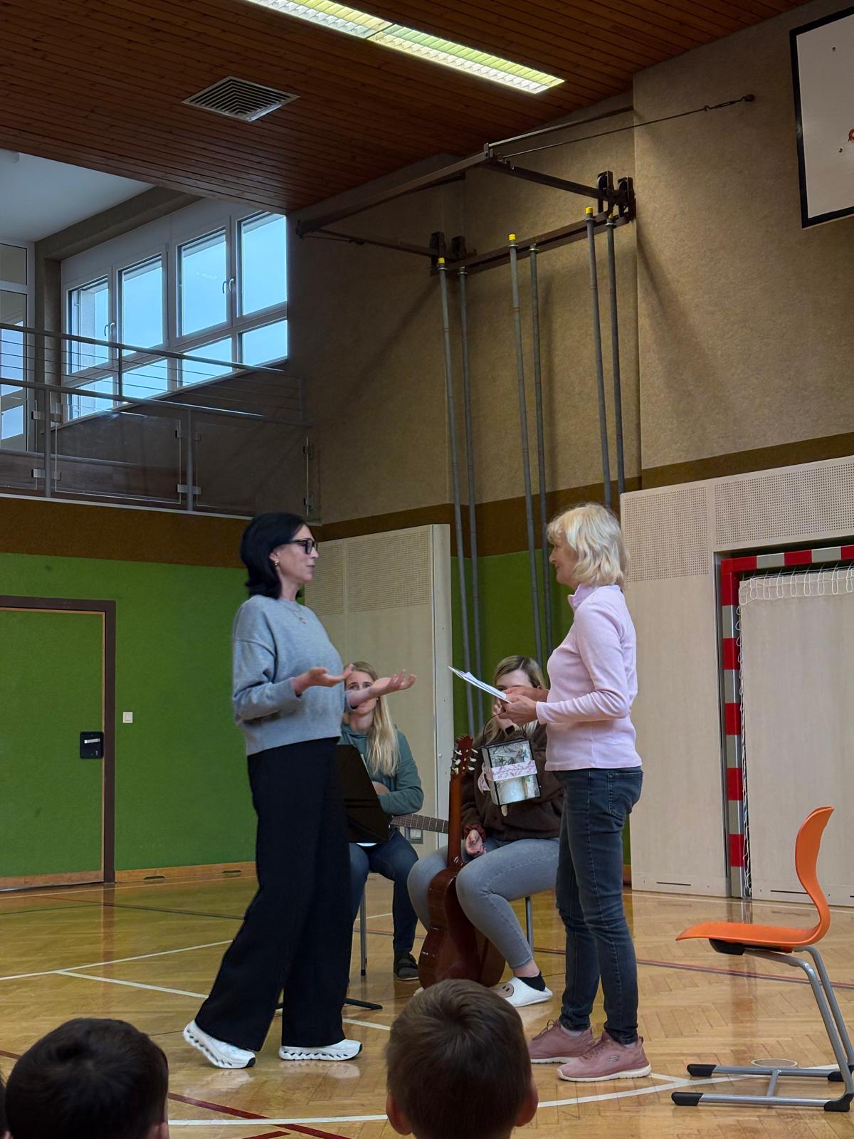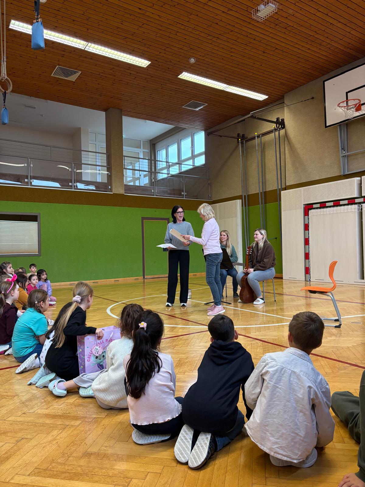 Als besonderes Highlight präsentierte die ganze Schule ein selbst umgedichtetes Lied von Frau Lehrerin Barkawi „Wir gratulieren heut charmant“. Darin wurden all die positiven Eigenschaften, Hobbys und besonderen Merkmale von Frau Wurm hervorgehoben.