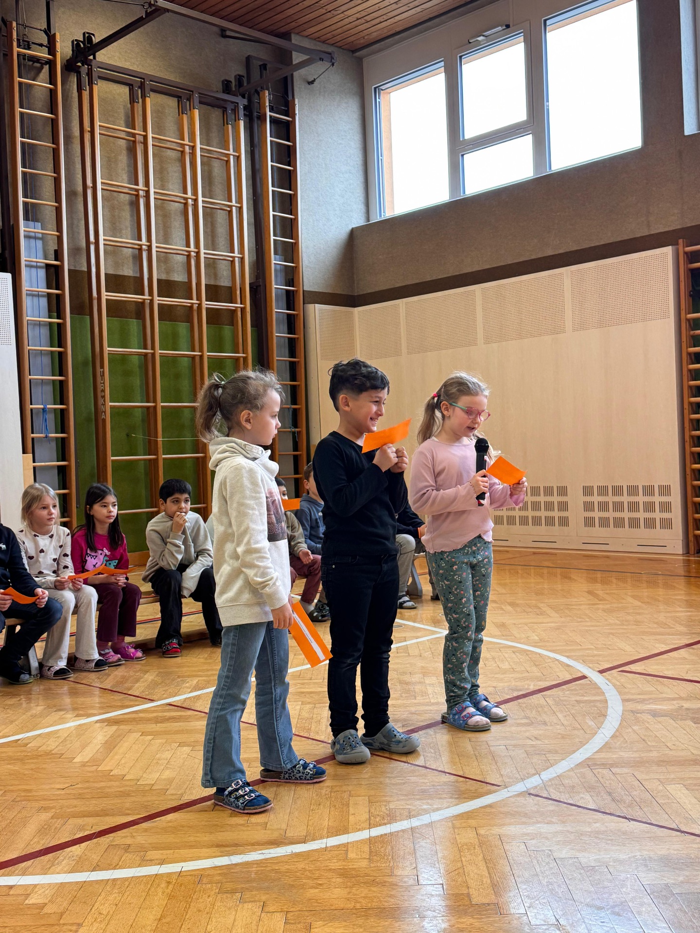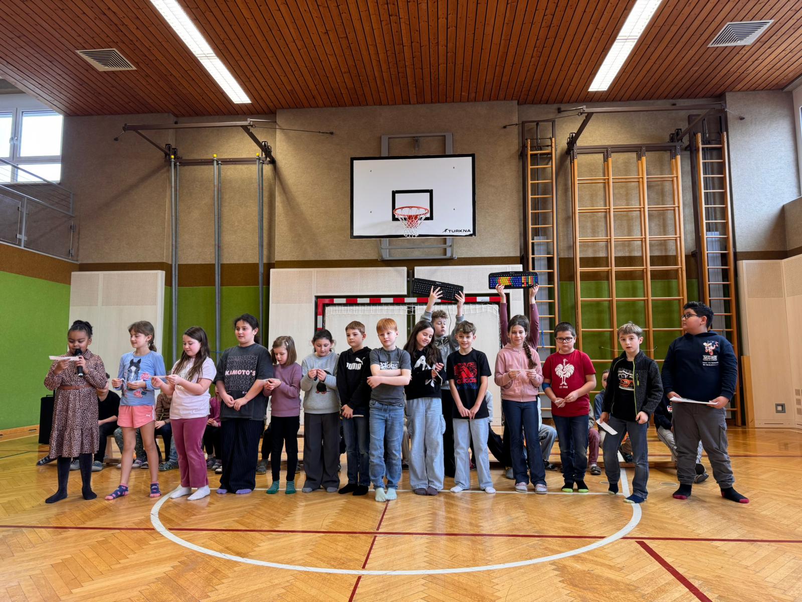 Heute, Donnerstag, der 19.02, fand an unserer Schule eine besondere Schulversammlung statt. Die 2. Klasse führte mit viel Freude und Selbstbewusstsein durch das abwechslungsreiche Programm und begrüßte alle Schülerinnen und Schüler herzlich. Gleich zu Beginn wurde gemeinsam unser Schulsong „Schule Miteinander“ gesungen.