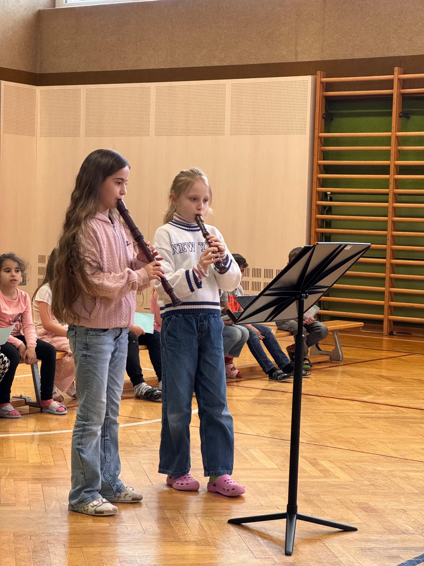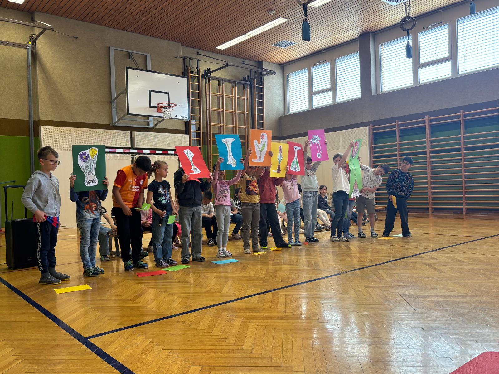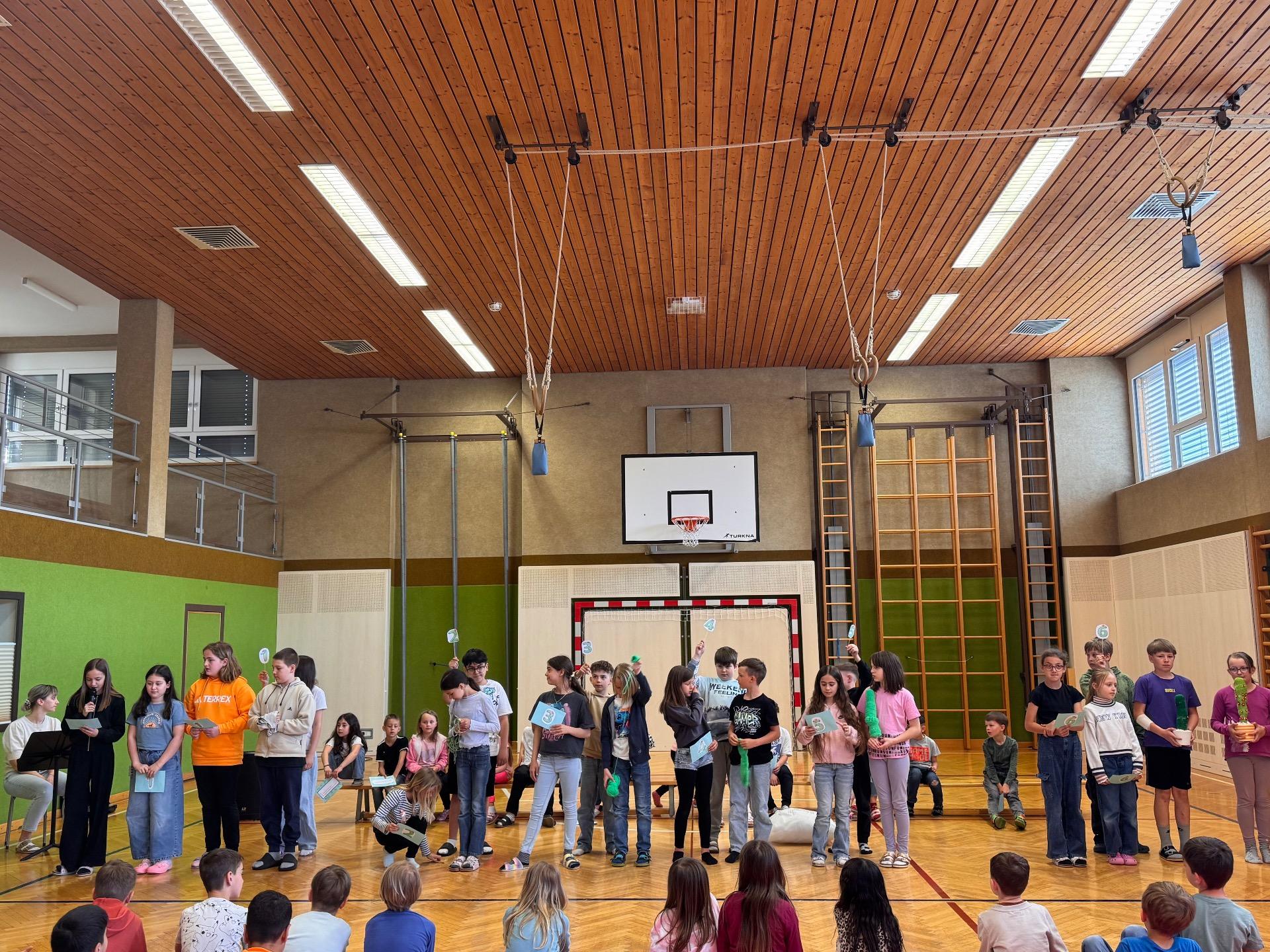 Zu Beginn wurde der Schulsong „Schule miteinander“ gesungen, was immer ein besonderes Erlebnis ist. Im Anschluss präsentierten uns die Kinder der 1b-Klasse ein lustiges Hasengedicht. Danach sangen die Kinder der 2b-Klasse ein cooles Lied passend zur Malreihe 6. Maira und Rosin aus der 4. Klasse spielten für uns ein Duett auf ihren Flöten und ließen uns ihren Beitrag vom Musikwettbewerb „Prima la musica“ hören. Im Anschluss berichteten die Kinder aus der 2a-Klasse von Frühblühern, von denen sie im Sachunterricht gelernt hatten. Die Kinder der Deutschförderklasse präsentierten Wörter zum Thema „Wetter“ und hatten ein Frühlingsgedicht einstudiert. Abschließend zeigten uns die Kinder der 4. Klasse ihre selbstgehäkelten Kakteen und erklärten uns, welche Schritte notwendig sind, um so ein Werkstück herzustellen.