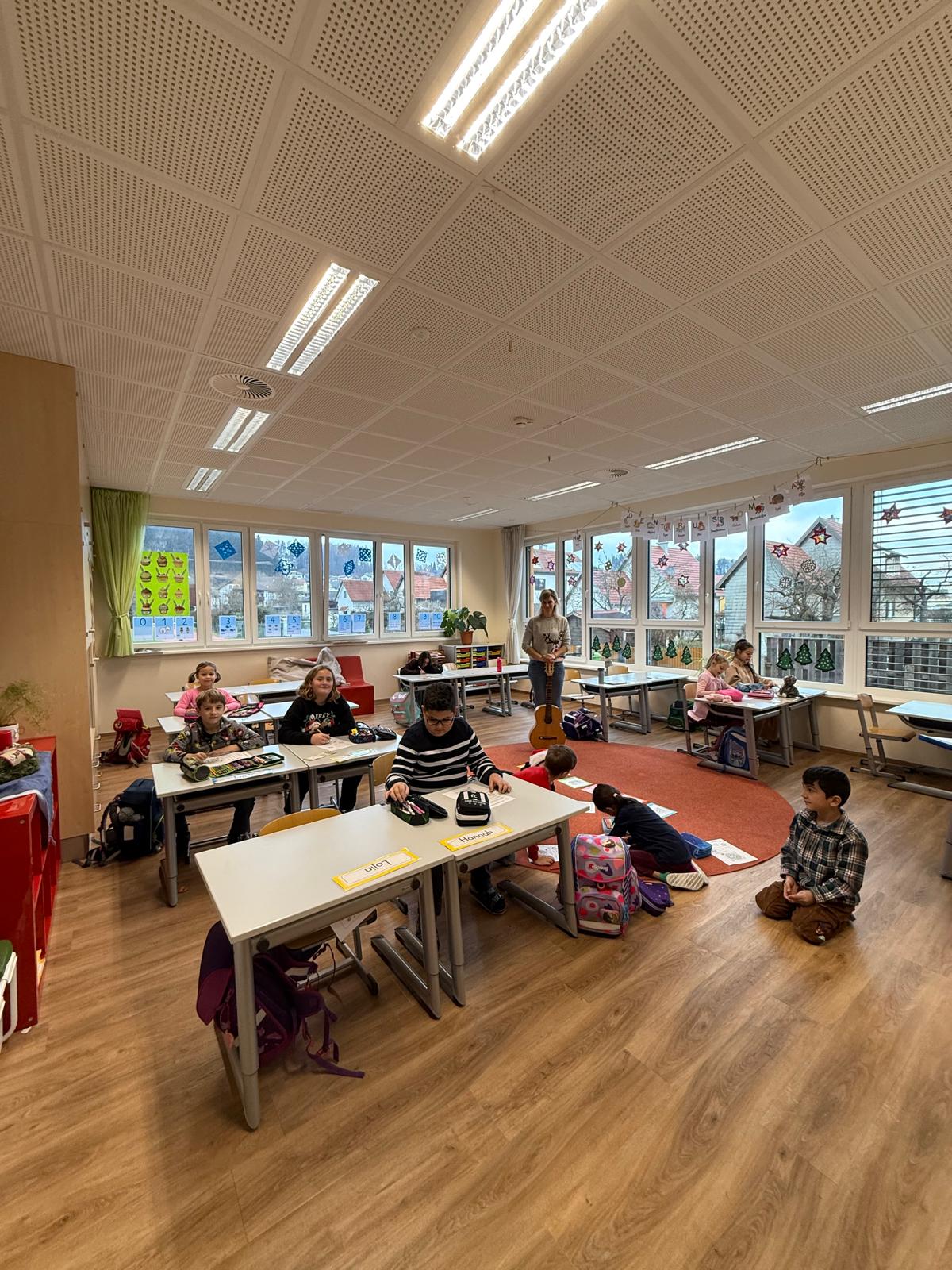 • Besinnlichkeit: Im kuscheligen Ambiente lauschten die Kinder weihnachtlichen Geschichten, während an der Musikstation gemeinsam Lieder gesungen wurden.