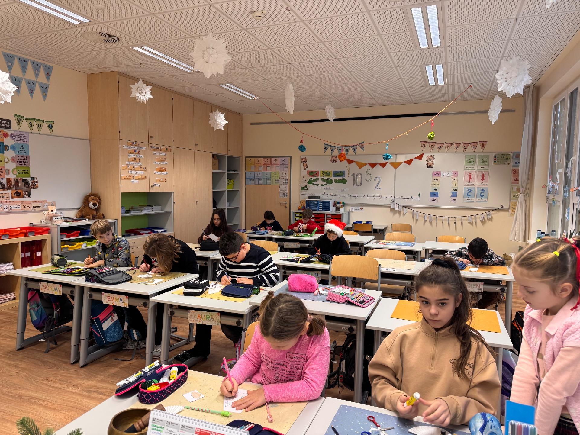 Am 22. Dezember 2025 also kurz vor den Ferien verwandelte sich unsere Volksschule in eine zauberhafte Weihnachtswerkstatt. An vielfältigen Stationen stimmten sich die Kinder gemeinsam auf das Fest ein: