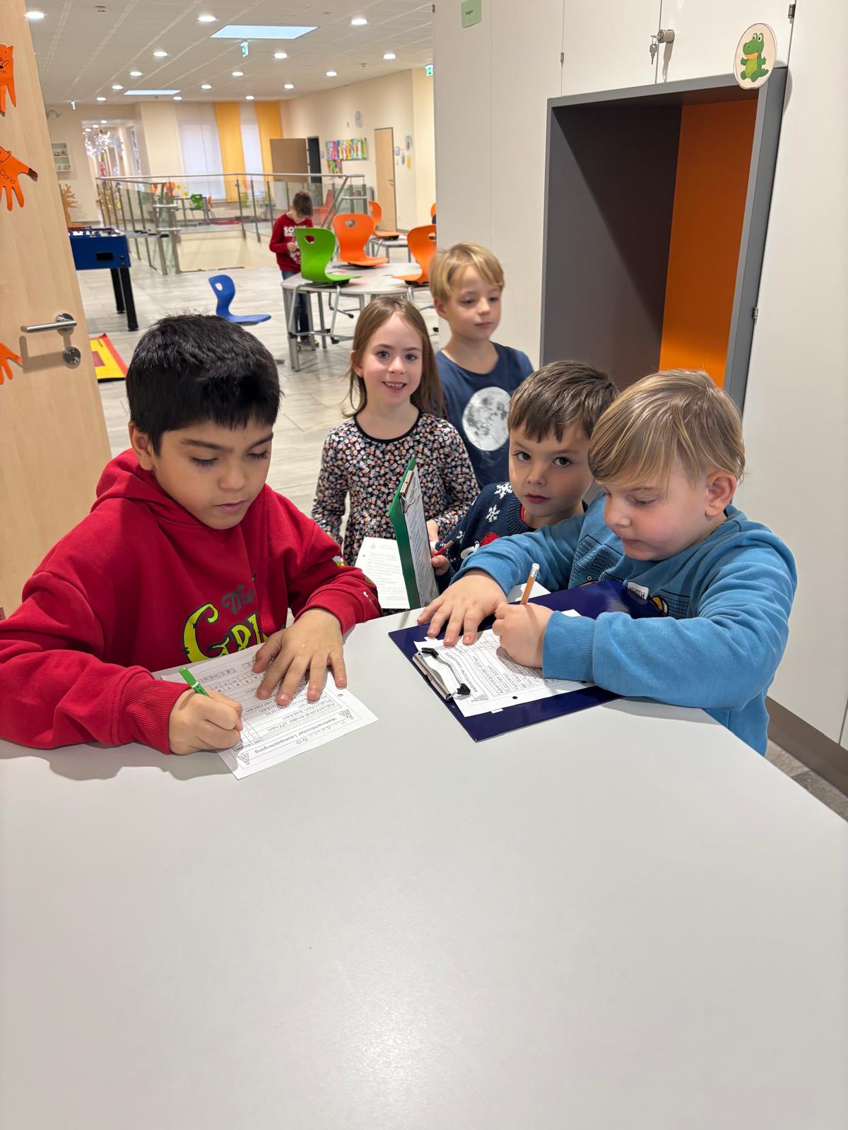 Die Kinder wurden klassenübergreifend durchgemischt und konnten innerhalb einer Stunde an zwei winterlichen Aufgaben teilnehmen.