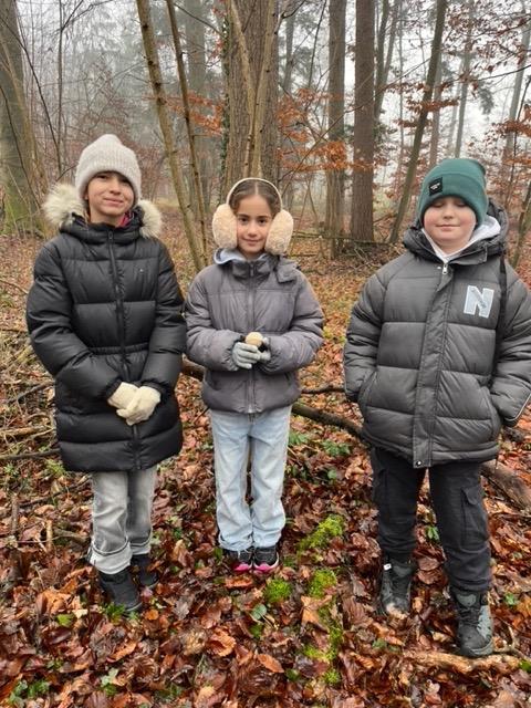 Besonders spannend war der Fund mehrerer Rehkuhlen, die genau betrachtet und gemeinsam besprochen wurden. Außerdem erfuhren die Kinder, dass Holzmehl den Menschen vor vielen Jahren in Hungersnöten sogar das Leben gerettet hat – eine Geschichte, die großen Eindruck hinterließ.